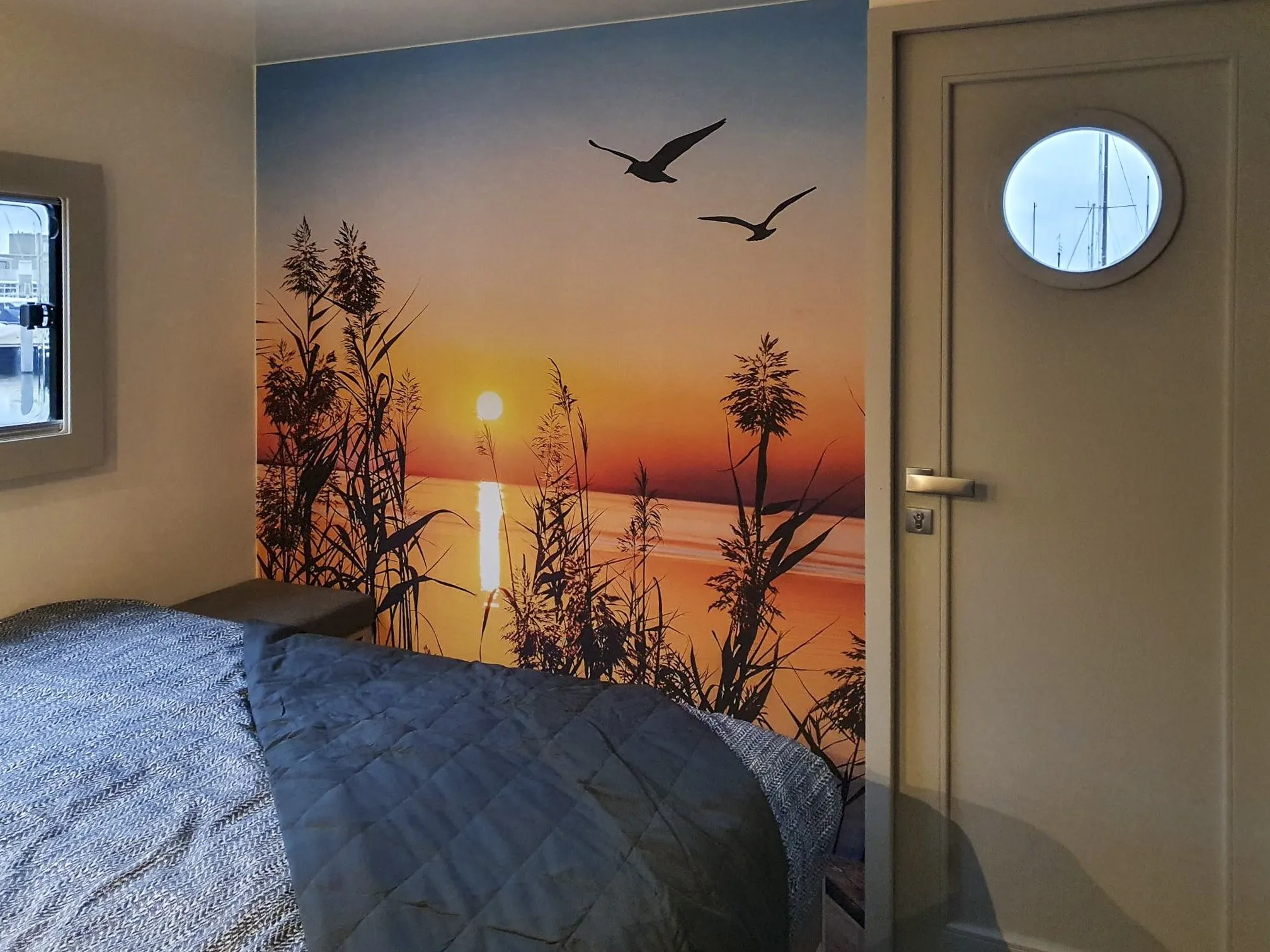 Houten paneel binnendeuren en houten paneel buitendeur achter. Zonnedek op het dak met RVS rand, RVS ladder en waterdichte kussens, aluminium opbergbox in het achterste gedeelte. Op voordek stuurconsole, hydraulische besturing, stuurstoel, achteruitvaarcamera en bediening boegschroef.